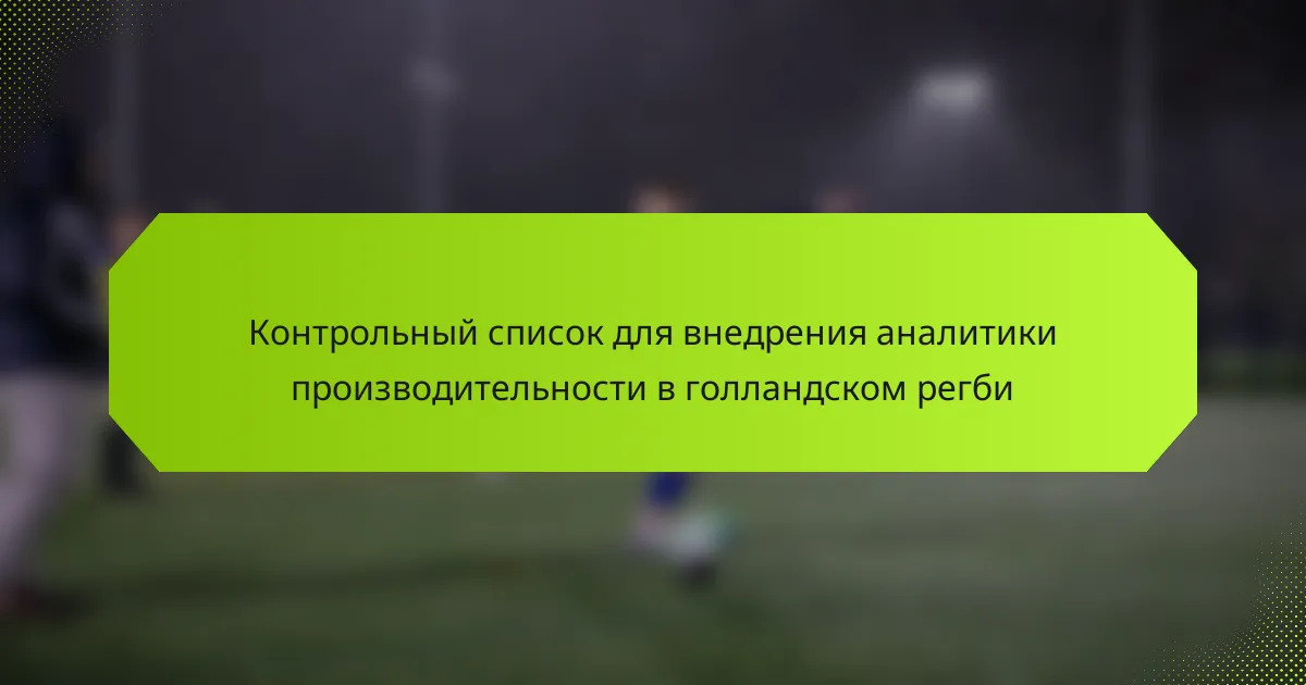 Чтобы оценить текущие возможности аналитики производительности в голландском регби, начните с оценки существующих методов сбора данных, программного обеспечения, квалификации персонала и процессов интеграции данных. Этот комплексный подход гарантирует, что все аспекты аналитики производительности будут учтены для эффективного внедрения.