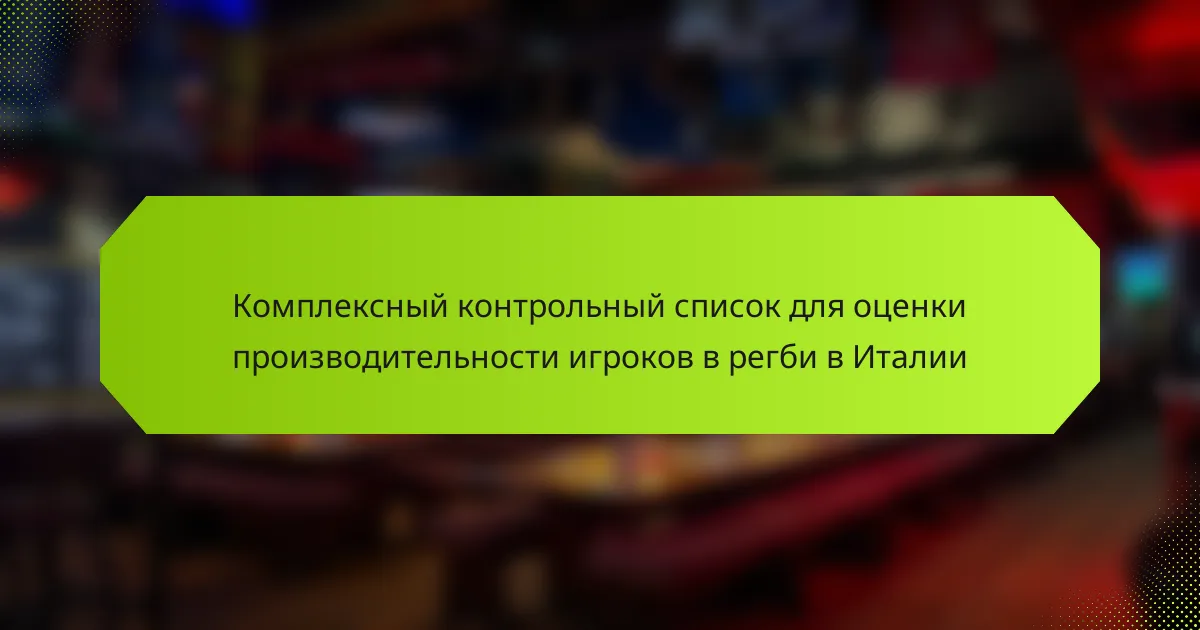 Оценка производительности регбистов в Италии включает в себя комплексный контрольный список, охватывающий ключевые показатели эффективности (KPI) в различных аспектах игры. Сосредоточив внимание на физической подготовке, технических навыках, тактическом понимании, психологической устойчивости и командной работе, тренеры и скауты могут эффективно оценить вклад игрока и его потенциал для роста. Этот структурированный подход гарантирует, что все критически важные аспекты производительности игрока будут учтены, что приведет к более обоснованным решениям в развитии игроков и отборе команды.