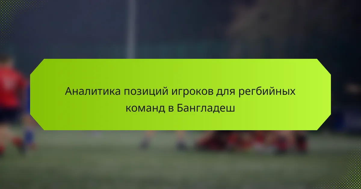 Как регбийные команды в Бангладеш могут использовать аналитику позиций игроков?