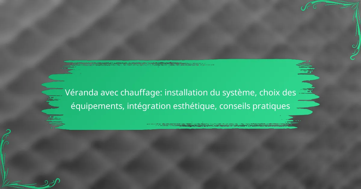 Installer un système de chauffage dans une véranda est crucial pour assurer un confort optimal tout au long de l’année. Le choix des équipements doit être réfléchi, tenant compte de l’espace disponible et de l’esthétique souhaitée, afin de créer une ambiance harmonieuse. En suivant des conseils pratiques, vous pourrez intégrer efficacement le chauffage tout en préservant l’élégance de votre véranda.