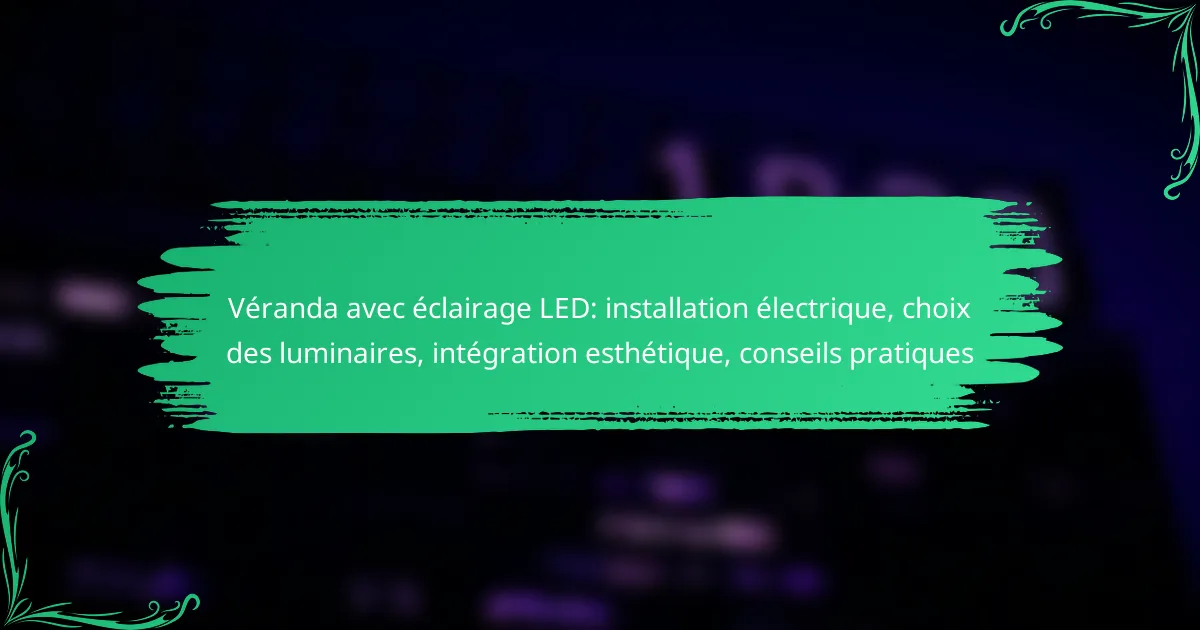 Installer un éclairage LED dans une véranda nécessite une planification minutieuse pour garantir sécurité et esthétique. Le choix des luminaires doit s’harmoniser avec le style de la véranda tout en assurant une luminosité adéquate, afin de créer une ambiance agréable et fonctionnelle. Suivre des conseils pratiques facilitera cette intégration et optimisera l’utilisation de l’espace.