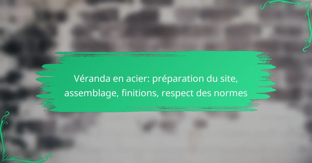 La construction d’une véranda en acier requiert une préparation minutieuse du site, suivie d’un assemblage rigoureux pour assurer la solidité de la structure. Les finitions jouent également un rôle crucial, non seulement pour l’esthétique, mais aussi pour la durabilité, en intégrant des traitements adaptés et des choix de vitrage. Enfin, il est essentiel de respecter les normes en vigueur pour garantir la sécurité et la longévité de l’installation.