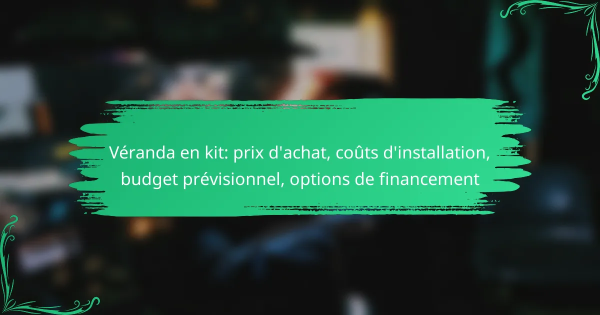 Investir dans une véranda en kit nécessite une compréhension claire des coûts associés, allant des prix d’achat aux frais d’installation. Il est crucial d’établir un budget prévisionnel qui englobe non seulement ces dépenses, mais aussi les imprévus potentiels. Une planification rigoureuse vous aidera à naviguer dans ce projet sans surprises financières désagréables.